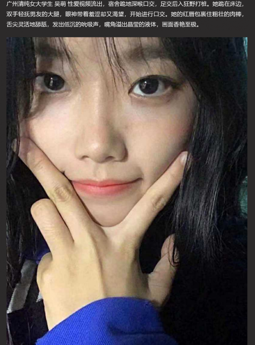 【影片名称】:2499-3019广州清纯女大学生 吴萌 性爱视频流出 宿舍跪地深喉口交 足交后入狂野打桩