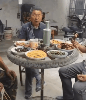 简配版会转动的餐桌,仔细一看居然是个车轮,这也太会整活了吧。