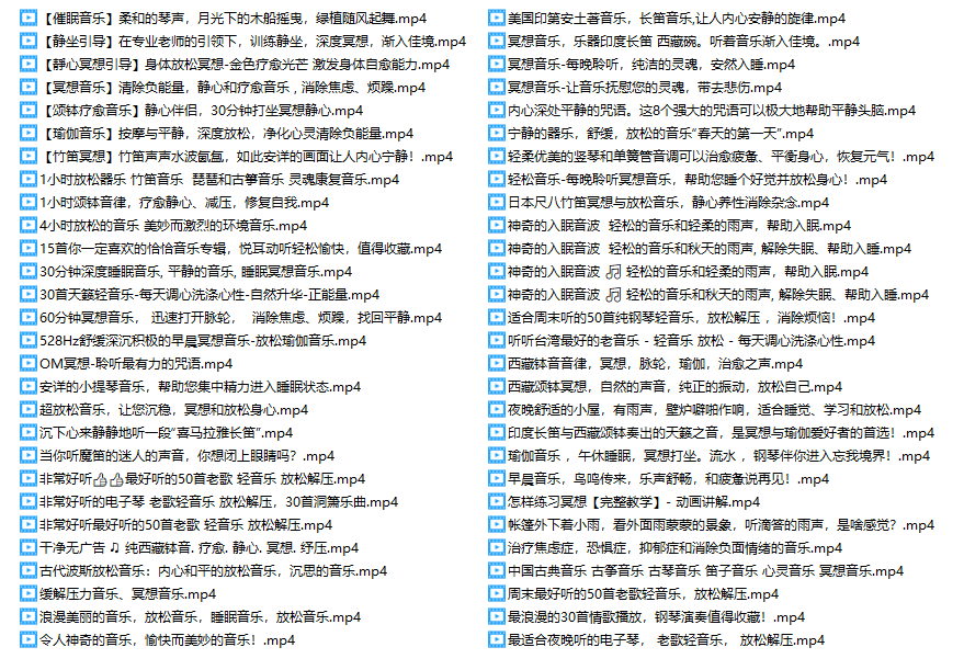 ● 冥想放松轻音乐合集-视频 列表 + 部分视频封面
