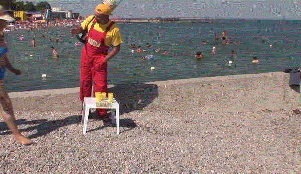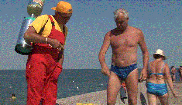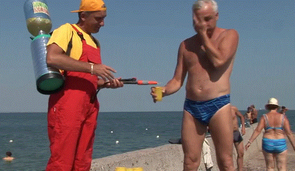 第五个傻逼在海滩上卖柠檬水,从裤裆里摸出根水管来,瞧把老头吓的: