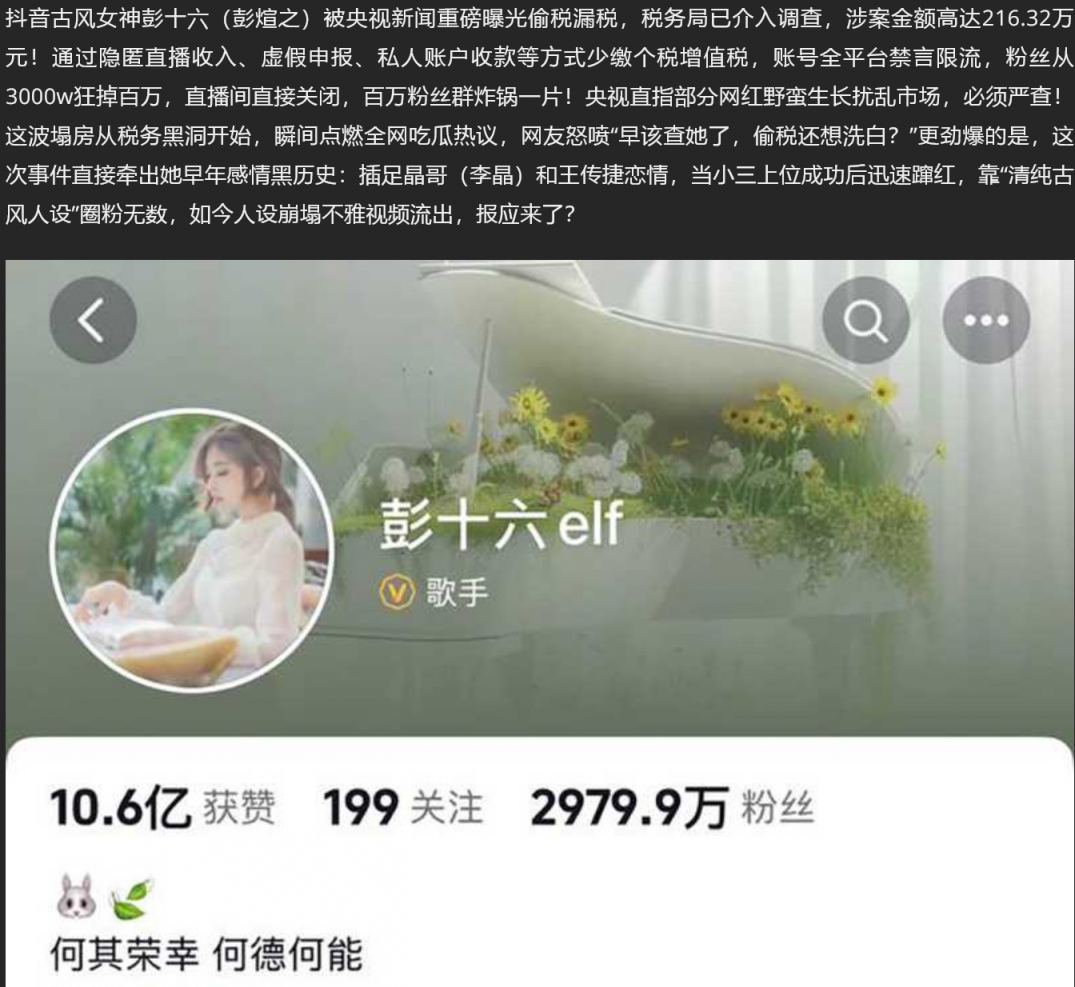 【5】❤️抖音3000W网红 彭十六 塌房大瓜 央视点名偷税漏税 小三上位王传捷 2分37秒做爱视频更多黑料独家曝光!