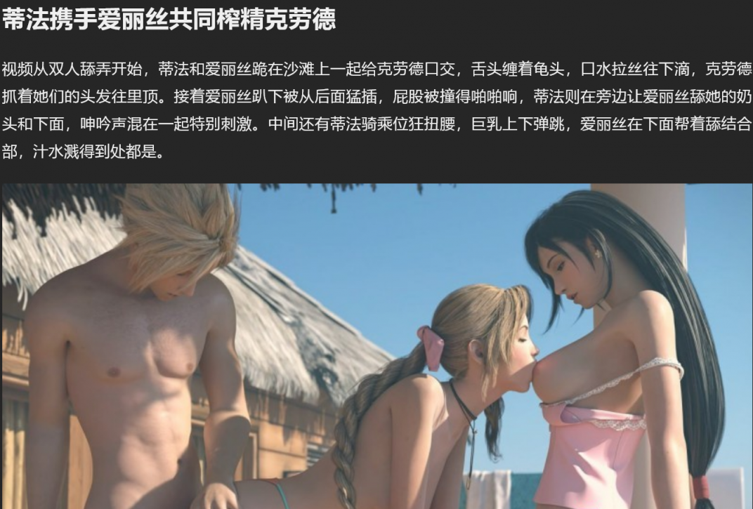 【影片名称】:2513-4020同人3D动漫 最终幻想 蒂法携手爱丽丝与克劳德上演3P戏码 各种性爱姿势轮番上阵 激情十足!